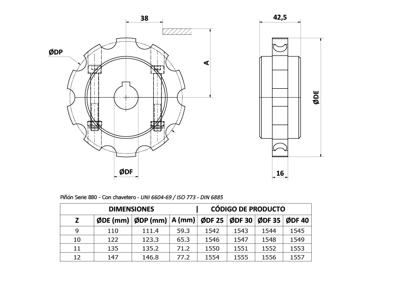 Pza. 1542 - Piñon Z9 D25 C/Chav MECANIZADO