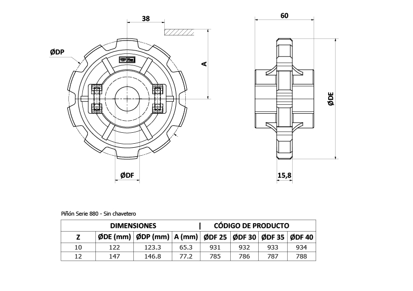 Pza. 788 - Piñon Z12 D40 s/chav Cad. C.Acetal 880