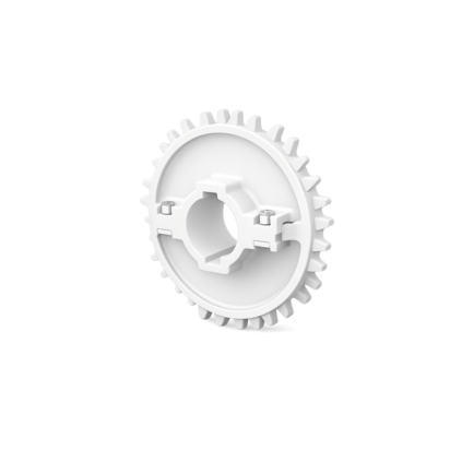 Pza. BM-D0-PPBZ18005-Piñón Z18 para eje redondo de 35 mm, bipartido, con doble chavetero, material poliamida, color blanco