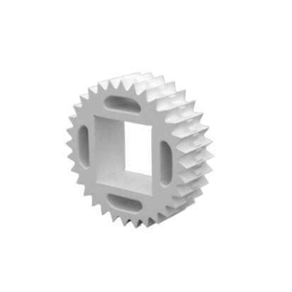 Pza.BM-J0-PRXZ32019.-Piñón Z32 para eje redondo de Ø30 mm, con chavetero, con guía central, material resina acetal, color natural