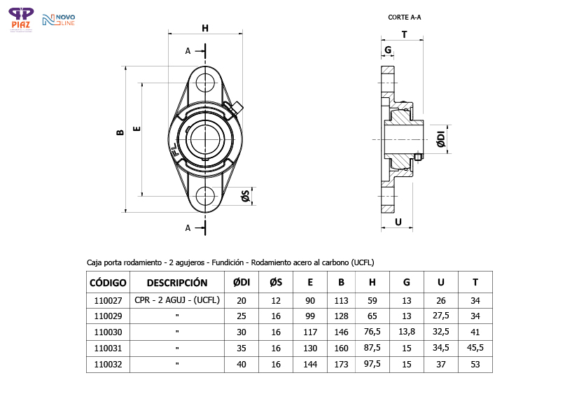 CAJA = FUNDICIÓN / RODAMIENTO = CS / ENGRASADOR = BS