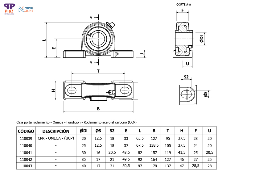 CAJA = FUNDICIÓN / RODAMIENTO = CS / ENGRASADOR = BS