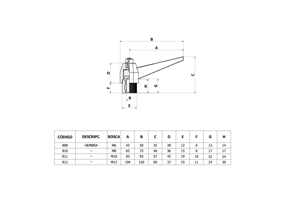 Pza. 812 - Perilla 1/2 Giro M12 Hembra
