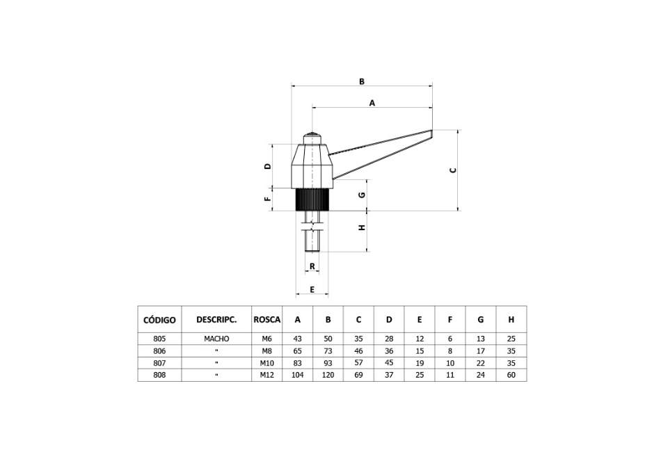 Pza. 808 - Perilla 1/2 Giro M12x60 Macho