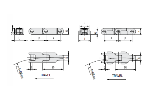Pza. 9050 - Cadena C600 p. 65mm sin TAB PP - PERNO INOXIDABLE AISI 304