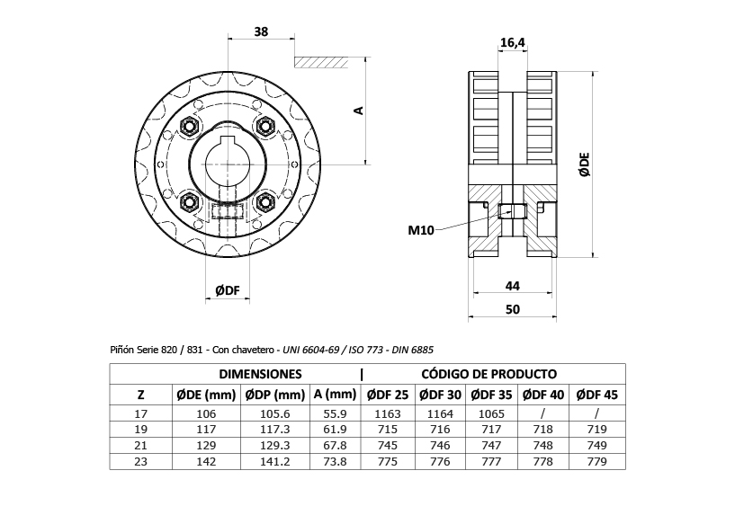 Pza. 778 - Piñon Bip VERTICAL Z23 D40 C/Chav Cad. Acetal