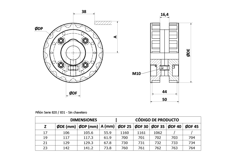 Pza. 704 - Piñon Bip VERTICAL Z19 D45 S/Chav Cad. R.Acetal