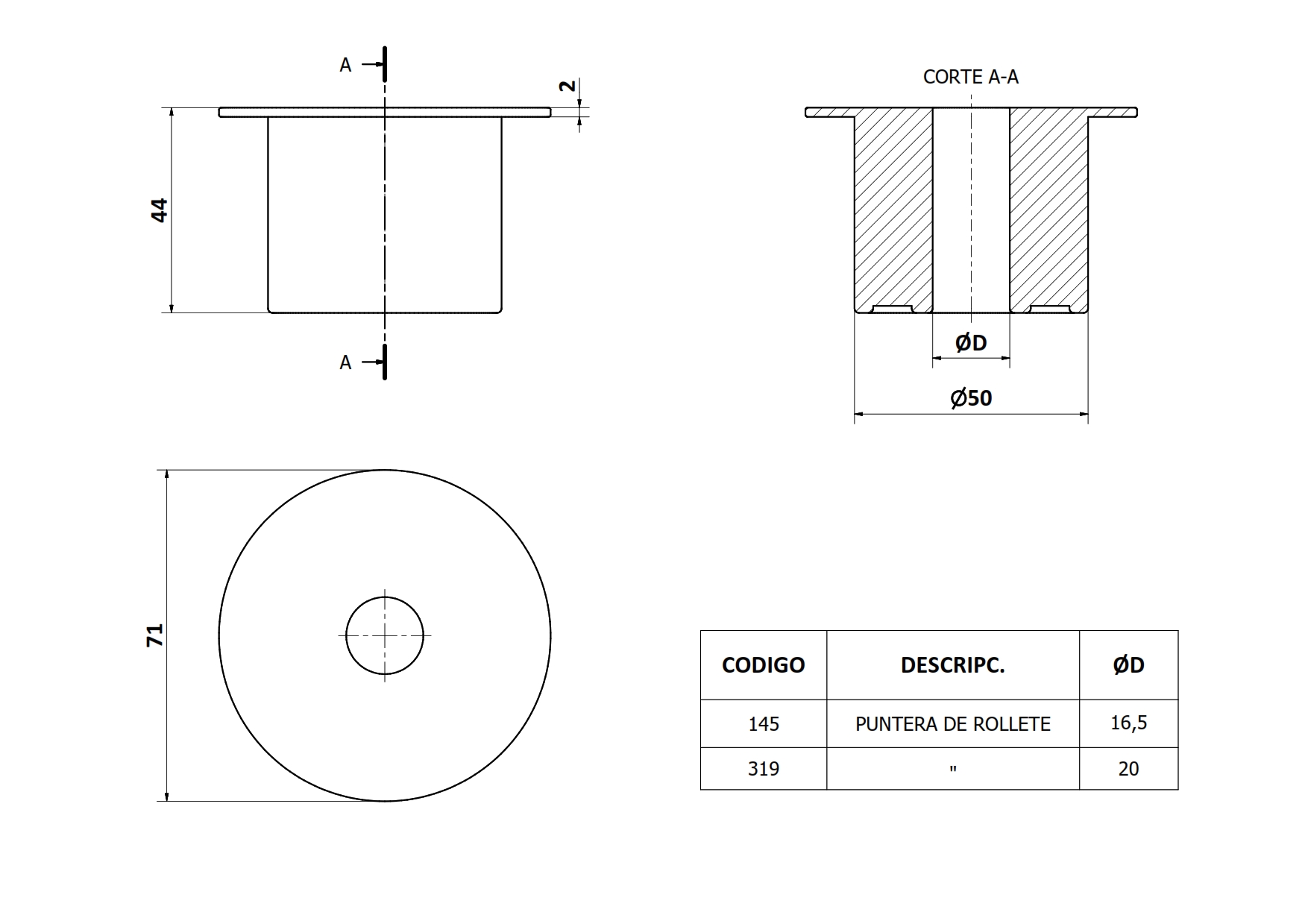 Pza. 145 - Punt. Rollete D16,5mm