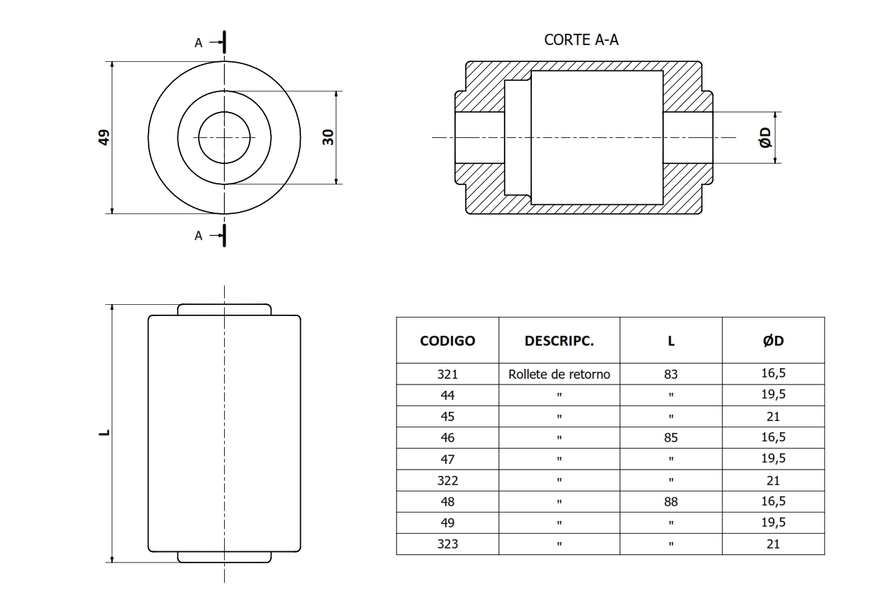 Pza. 322 - Rollete Ret 85x21mm Nat