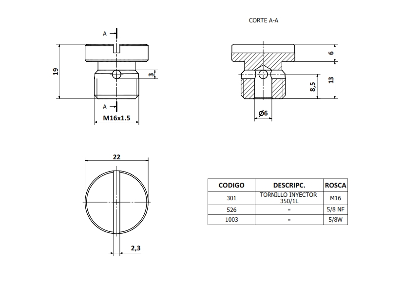 Pza. 301 - Tornillo Inyector Alum M16 x 1.5