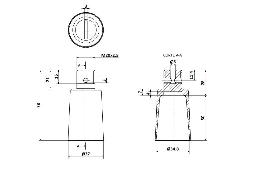 Pza. 25 - Tornillo Inyector PBL ROSCA PLÁSTICA M20 x 1.5